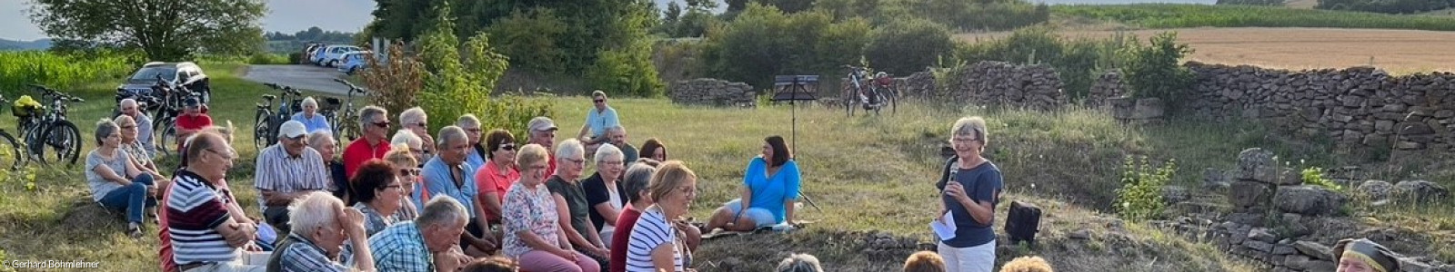 „Wer von Euch ist eine freie Frau, wer ein freier Mann?“ Mit dieser Frage eröffnete Walpurga von Hochstetten alias Pfarrerin Heidi Wolfsgruber, Bildungsbeauftragte im Dekanat Neustadt/Aisch, die 6. Station der diesjährigen Kirchentouren. Diese führte am ersten Mittwoch im Juli zur Wüstung Zennhausen an der Verbindungsstraße zwischen Neuhof a.d. Zenn und Adelsdorf.
